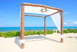 La ceremonia judía, se celebra en una Sinagoga, aunque puede celebrarse fuera de ella también. Lo importante es que la pareja se sitúa debajo de la llamada “Jupá”, una especie de dosel colocado sobre cuatro largas baras bajo el cual se lleva a cabo el Santísimo Sacramento y que simboliza la nueva casa que van a construir la nueva pareja juntos.
